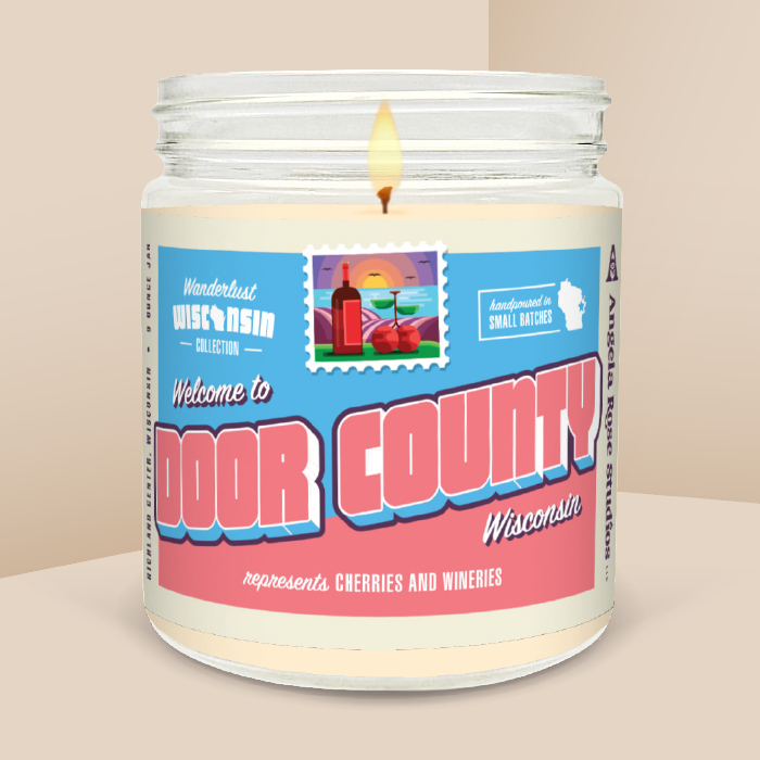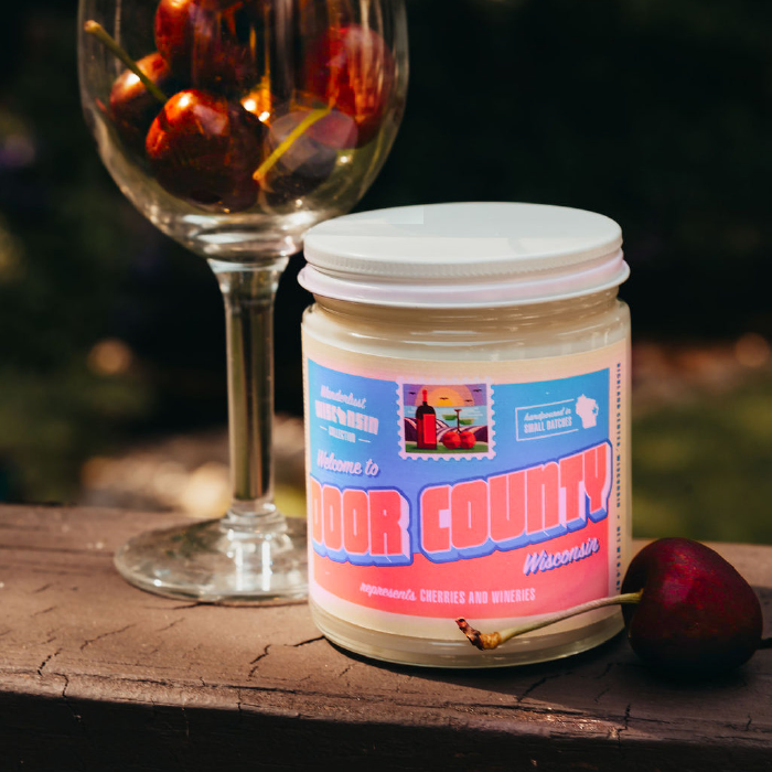 Door County is a custom blend of cherry blossoms and cherry merlot, symbolizing the Midwest's cherished vacation destination. Cherries, integral to Door County, inspire us to capture the essence of its outdoor activities, wineries, and charming towns in our fragrance selection.