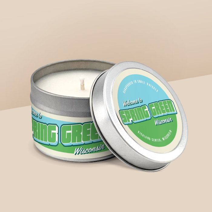 Spring Green is most known for their art, Frank Lloyd Wright, and the Wisconsin River. This Spring Green scent represents the river valley, combining the water and prairies to make this scent blend.